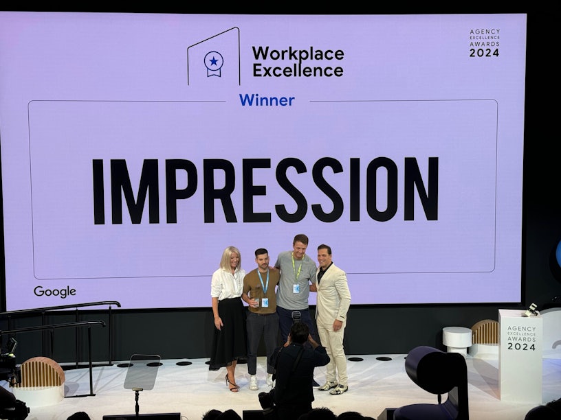 We’re thrilled to have won an award at this year’s Google Agency Excellence Awards! This award highlights our commitment to making Impression one of the best agencies to work for. Over the past year, we’ve consistently improved our processes and launched new initiatives, always prioritising employee well-being and corporate responsibility in everything we do.