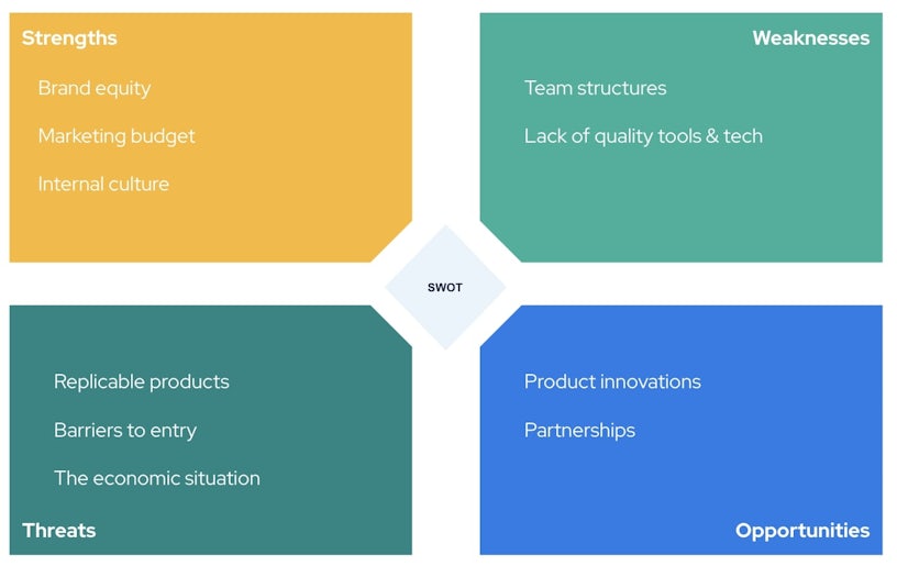 The SWOT analysis has been around for a very long time, and for good reason! It categorises business information into four categories.