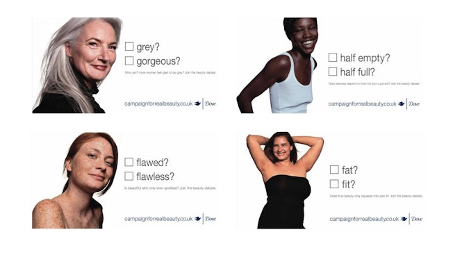 In its Real Beauty Display Campaign, Dove used checklist-style visuals to challenge conventional beauty standards, addressing topics such as weight, ageing, and other common insecurities faced by women. These efforts aimed to replace unrealistic ideals with authentic representations of real people.