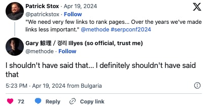 However, at the conference, Illyes said that nowadays, websites don’t need as many links to rank well in search results. Instead, Google’s machine learning and use of AI have made it easier for the search engine to understand web pages without the need for these links. For this reason, Google is placing less emphasis on links when it comes to ranking factors. On X, Illyes seemingly backtracked on his statement.