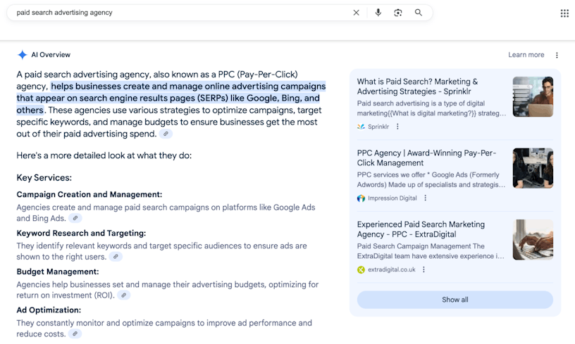 AI Overviews and other such AI-driven features aren’t going away – and their rapid adoption suggests that users don’t hate this mode of search. Maintaining bottom-of-funnel visibility across traditional search results that drive revenue is still key. But it’s likewise important to keep pace with changing search behaviour: if your ideal customers are searching where AI Overviews are commonly present, your brand should be present there too.