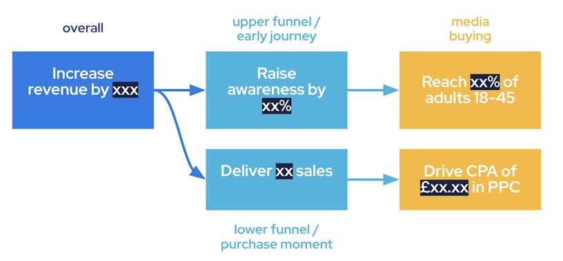 A solid KPI framework is built top-down, starting at the business level and laddering into the jobs-to-be-done across marketing and media: