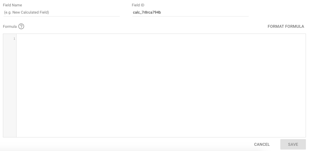 Continuing with our previous example, here’s how to create a custom dimension called ‘Campaign Area’. First, open your data source by clicking Resource > Manage Added Data Sources > Edit. Then, click ‘Add a Field’ and you will be shown the screen below.