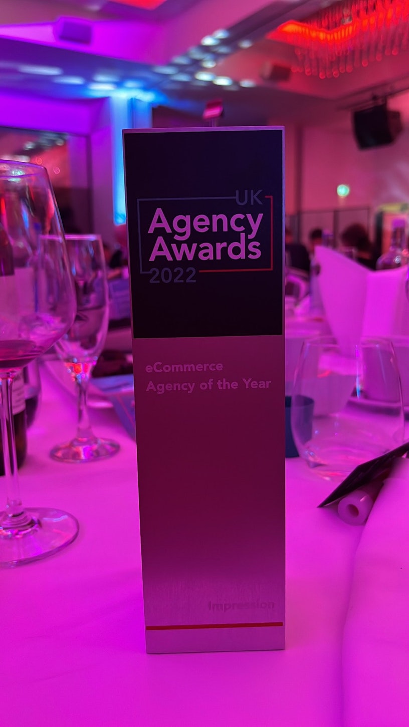 We’re proud to announce that last night Impression took home the award for Ecommerce Agency of the Year for the UK Agency Awards 2022! Congratulations to all the agencies that won an award.
