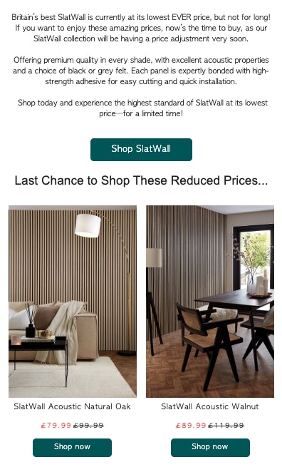 Take the example of this eye-catching marketing email promoting a sale at Naturewall: the imagery encourages potential customers to click through to the product pages, whilst the relatively small image file size means that the email still loads quickly.