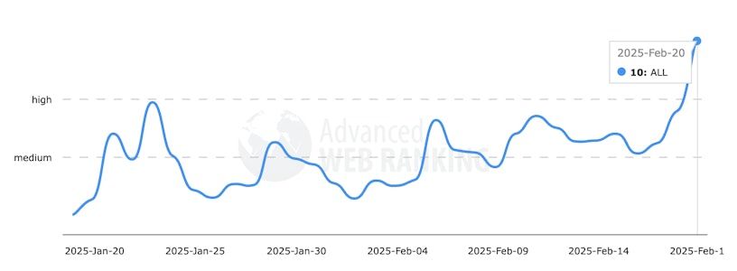 Semrush Sensor data recorded a very high range of volatility on Feb 20.