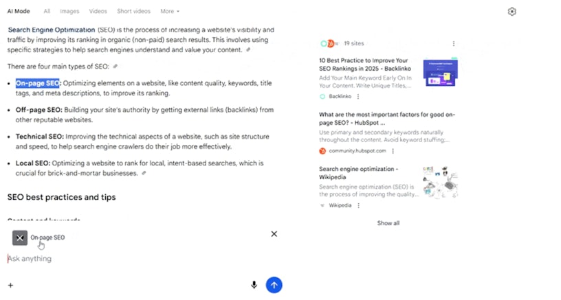 - AI Mode testing text selection for follow-up questions