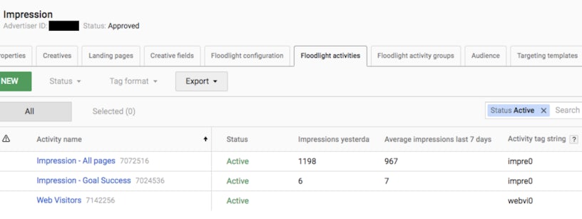 Once you’re happy with the Floodlight activity group, you’re ready to create a Floodlight activity. Select the ‘Floodlight activities’ tab and click ‘New’.