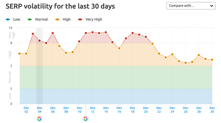 Many tracking tools around December 3rd and 4th flagged spikes within search volatility, particularly within the Arts & Entertainment, News and Sports. Although this is considered an unannounced algorithm update, many websites saw fluctuations during this period.