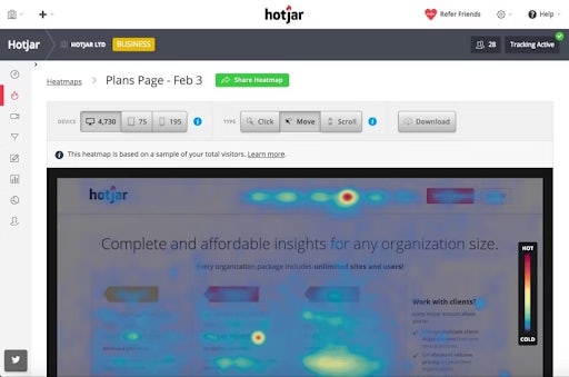 With these more premium heat map solutions, you can unlock sophisticated analytics tools, unlimited user tracking, and the ability to save and download heat maps, giving you access to historical data to inform more decisions. These advanced platforms also tend to have more processing power, meaning that heat maps load quickly, making it easier to switch between them and filter results.
