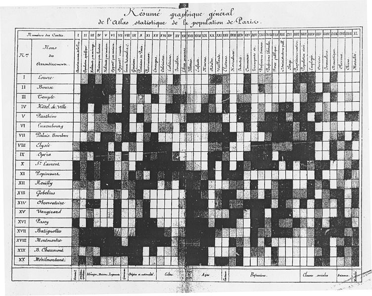 Heat mapping is a form of data modelling that is thought to have originated all the way back in the 1800s. Toussaint Loua, a highly regarded French statistician, provided the first known example in the form of a chart he produced in 1873. Loua’s early heat map documented population statistics for the city of Paris. He used manual greyscale shading to depict higher values in dark grey and black, with lower values in light grey and white.