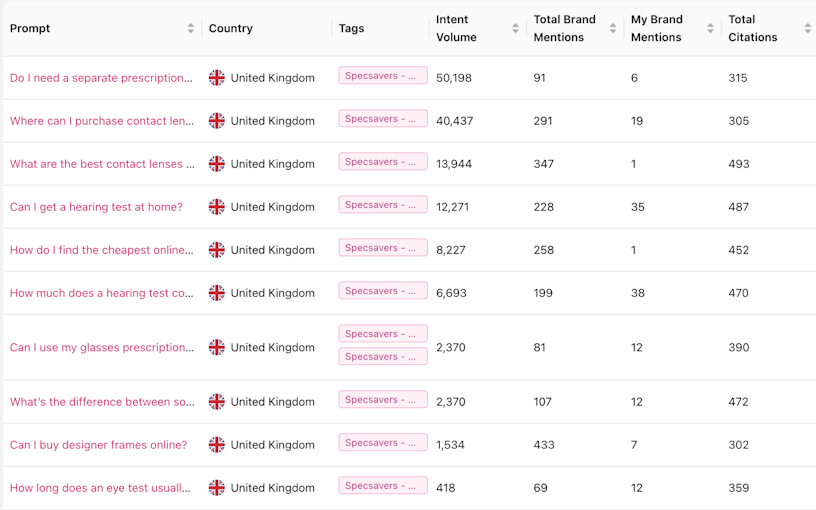 This change in behaviour is a challenge for SEO. There’s no longer a list of the top 20 “money” keywords to focus on. Instead, businesses need to build a large set of prompts around a topic and track them as a proxy for visibility. Using the example above, if we understood where a business ranked across these prompts, we’d have a clearer picture of overall LLM performance.