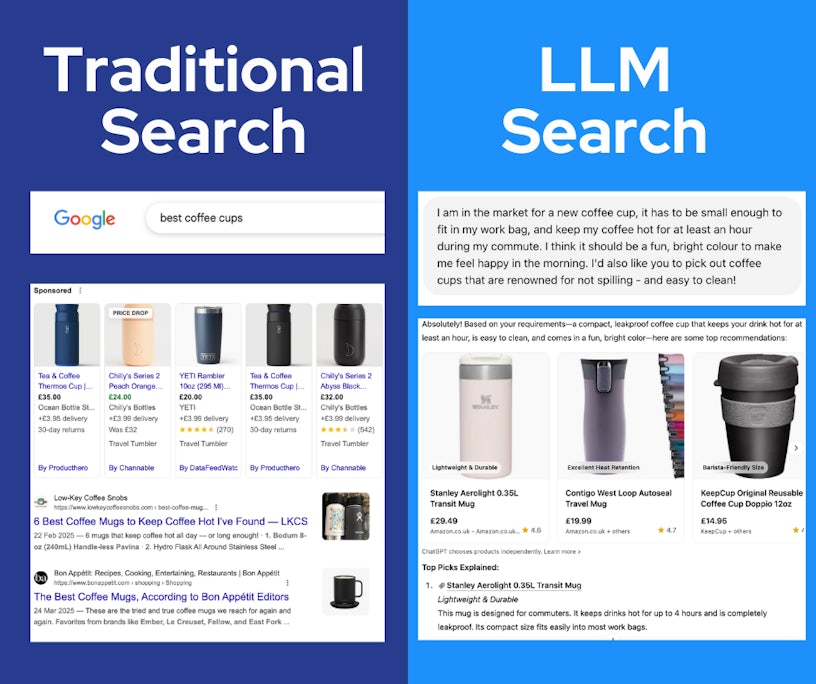 Goal: For LLMs to accurately describe your products, compare them to competitors and answer common shopping questions such as ‘what is the best travel mug’.