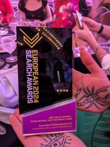 We’re over the moon to have been crowned a winner at The European Search Awards 2024 for our work with Cancer Research UK! This provides well-deserved recognition for our teams and our client partners who continue to trust our approach and are always open to trying new methodologies and strategies.