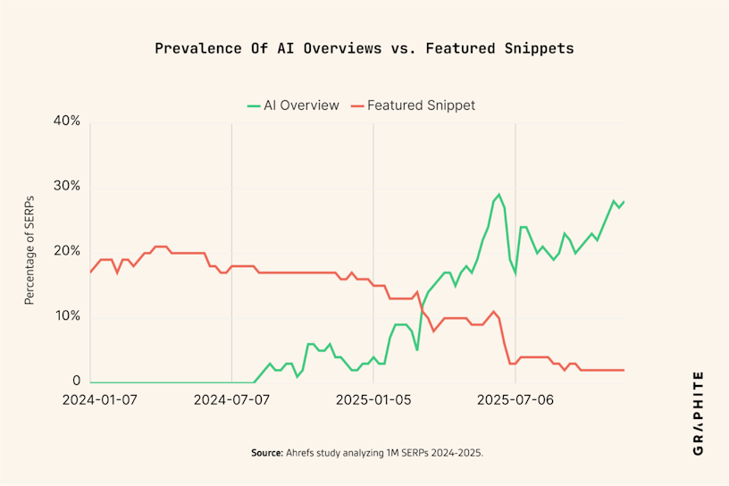 The prevalence of AI Overviews that appear in roughly 30% of SERPs does reduce click-through rates when they’re shown (by about ~35 %), but they don’t dominate search experiences enough to cause massive traffic losses. Moreover, featured snippets and other SERP features long pre-dated AI Overviews and similarly reduced CTRs on some queries.