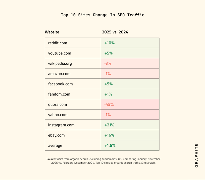 The newly large-scale analysis by Graphite in partnership with Similarweb challenges the narrative that SEO traffic has collapsed due to AI advancements or changes in search behaviour. The study examined organic search traffic to over 40,000 major U.S. websites and found that SEO traffic has declined modestly, by about 2.5% year over year rather than dramatically.