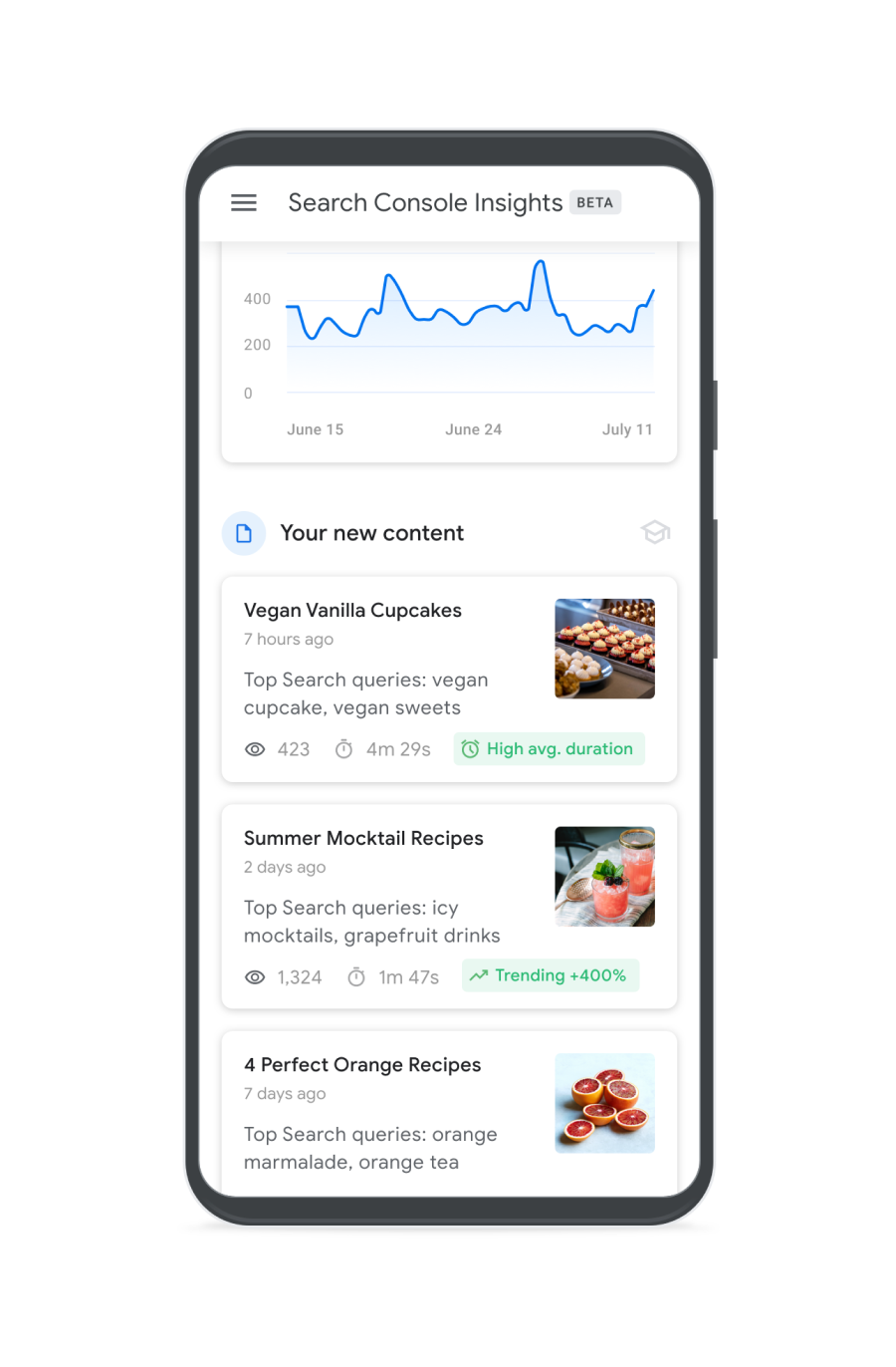 This experience joins data from both Search Console and Google Analytics and is designed to help content creators understand how audiences discover their site’s content and what resonates with their audiences – including information such as: