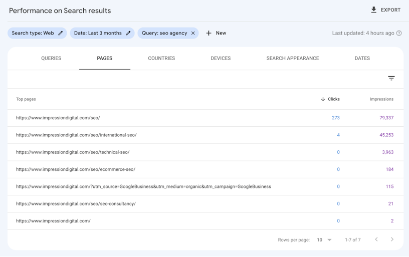 If you notice more than one URL in GSC is getting clicks for the same search term, that’s a signal you should investigate further as this could indicate a case of keyword cannibalisation.