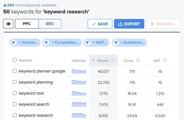 Think of this as the all-important filtering stage in your keyword research process. You’ll only retain the keywords that match up with your proposed content in terms of search intent, discounting all of the others.