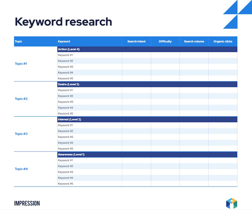 Through keyword research, we’ll take this seed keyword and expand on it to establish a list of target keywords for a particular page. When we repeat this process across an entire site or site area and add a new section for each page on our keyword targeting map.