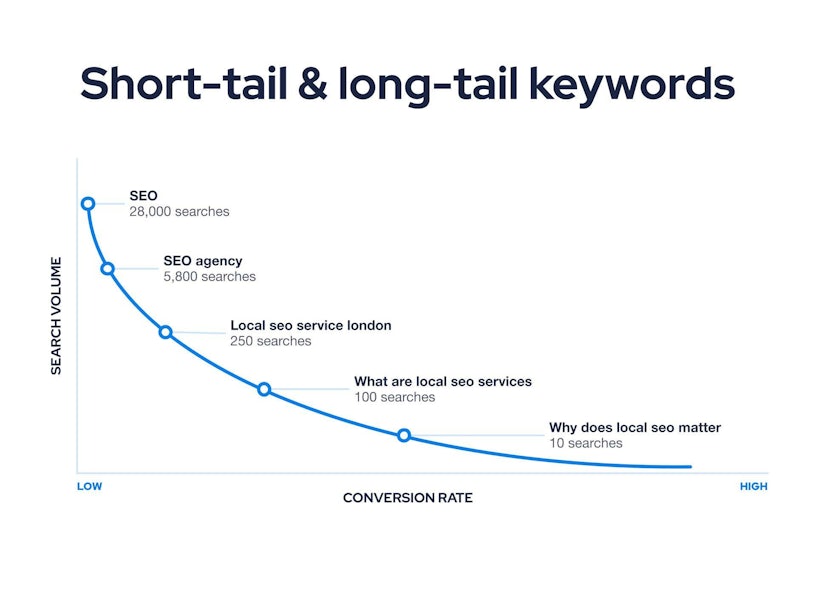 As we’ve explored, long-tail keywords are specific, less competitive phrases that have the potential to attract valuable traffic. These keywords are often overlooked because of their low search volume. However, Search Engine Land estimates that 70% of searches consist of long-tail keywords.