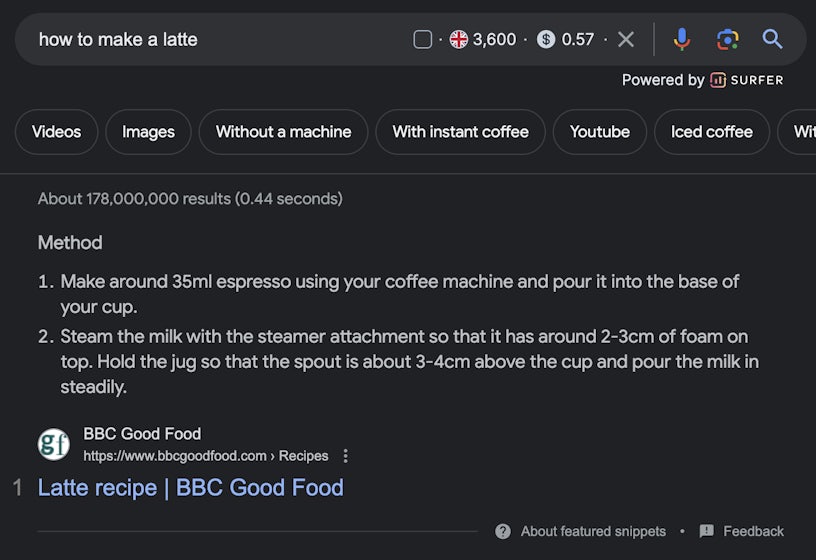 As well as targeting long-tail keywords, another approach you could consider is targeting SERP features. Providing your content is optimised appropriately, targeting SERP features such as featured snippets and People Also Ask (PAA) questions can be a good way to get your web page to the top of the search results.