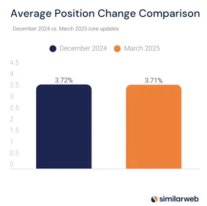 Semrush indicated that the volatility of the March 2025 core update was similar to that of the December update. Additionally, data from Similarweb showed that the average position remained relatively unchanged between the two updates.