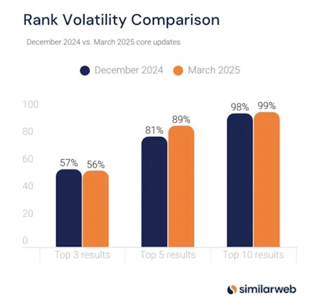 Further data from Similarweb indicated that the March core update displayed slightly lower fluctuations in the top three positions but increased volatility in the top five.