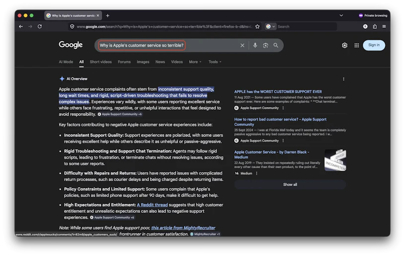 The report also claims that query framing influences which sources are cited, how summaries are written, and the overall tone of responses. This aligns with observed behaviour in AI Overviews, where tone often shifts based on user intent.