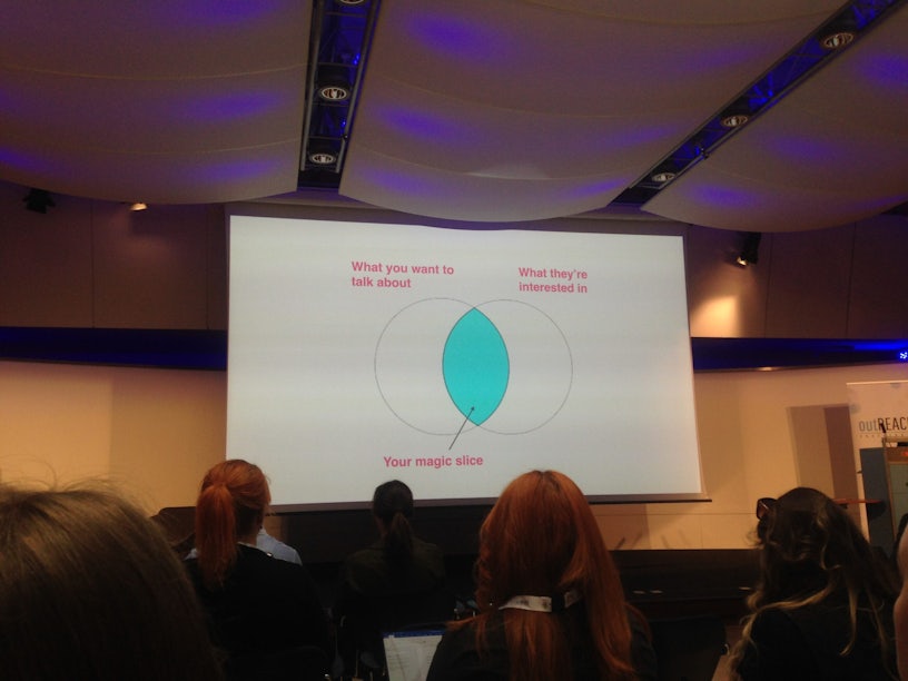 Think of the venn diagram, where what you want to talk about overlaps with what they want to hear about – that, according to Jack, is your magic slice.