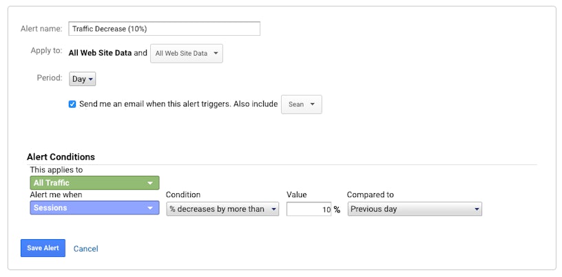 Although we’re fans of both data and Google Analytics, it’s difficult to monitor every single account, every single day. This is where Google Analytics Custom Alerts come in.