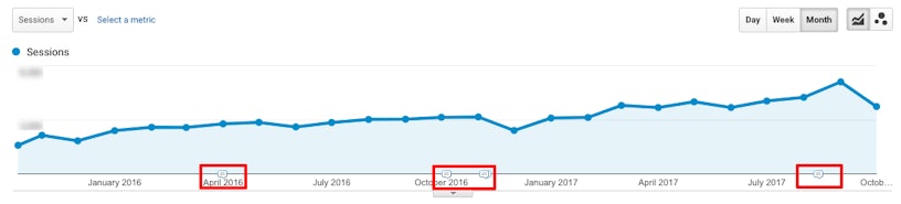 It’s our job to report on site performance to our clients, and it’s also our responsibility to notify them if anything significant changes within their Analytics data.