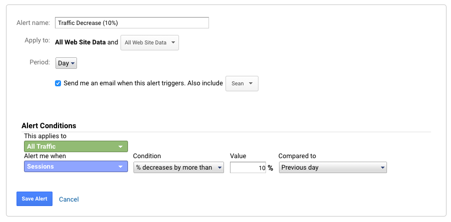Although we’re fans of both data and Google Analytics, it’s difficult to monitor every single account, every single day. This is where Google Analytics Custom Alerts come in.