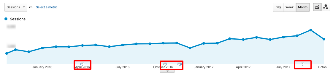 In my experience, annotations are another underutilised feature. Consider annotations the post-it notes within Google Analytics that enable you to add customised reminders to your data. They allow important events which may include content changes, site redesigns, email newsletter activity and even offline marketing activity which may impact on site traffic.
