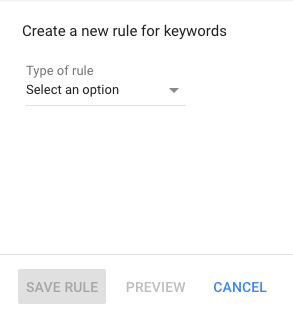 You should see a big blue plus button on the left-hand side of your screen. Click that and then “Keyword Rules”. You’ll then be presented with a screen like the one below.