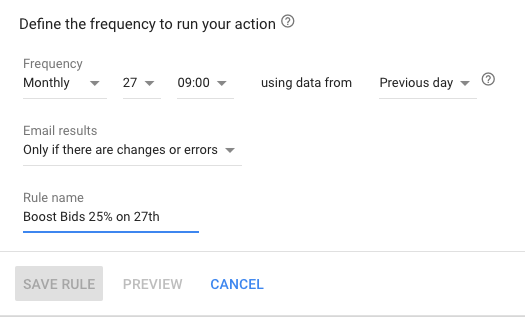 The end of the month sees a spike in spending for many businesses and now thanks to automated rules, your Google Ads campaigns can capitalise on it. Once you’ve set up an automated rule to raise your Max CPC bids towards the end of the month and another to drop them down again at the start of the next month, you can rest assured that you’ll be capturing extra traffic with money in their pockets.