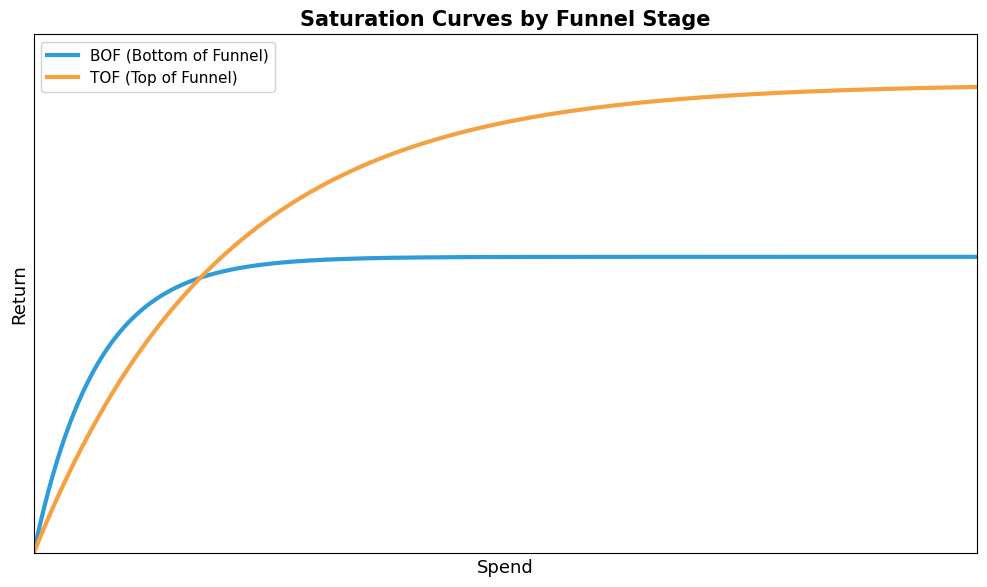 While every business is unique, saturation curves generally fall into two categories based on where they sit in the marketing funnel: Bottom of the Funnel (BOF) and Top of the Funnel (TOF).