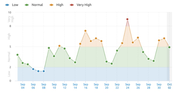 In the below screenshot from SEMRush, we can see that there was a spike in SERP volatility around the 23rd and 24th of September.