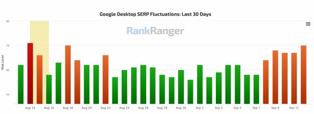 The first suspected algorithm update took place between the 9th and 13th of September over the weekend. Search Engine Roundtable reported high levels of SERP volatility during this period. This search update was unusual not just for its intensity but also its duration as it was much longer than most.
