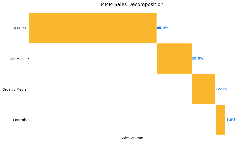 When presenting results of a Marketing Mix Model (MMM), the go-to graph to display is a waterfall chart, representing the contributions from all media channels. However, there is always the question. What is the baseline?