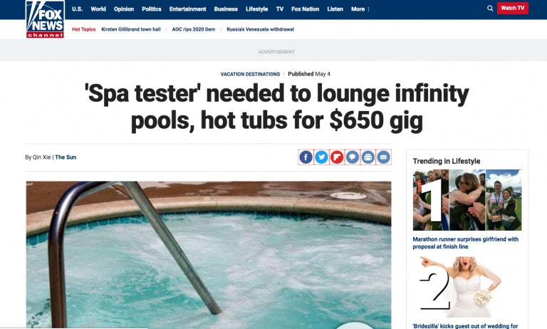 “The idea was to create the ideal dream summer job, looking for one lucky person to be a spa and hot tub tester,” said Libby.
