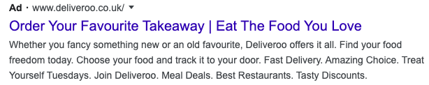 The new ad favicon is smaller and is now in black text, making it tricky to spot within the SERPs. The below screenshot shows a paid advertisement for Deliveroo – if you weren’t looking closely, you could easily click on the paid result rather than an organic one. If this was intentional, Google has cleverly implemented a way to increase their ad revenue.