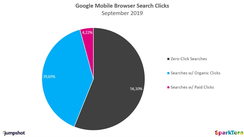 One of the biggest trends in recent years has been the rapid growth in no-click searches. Rand Fishkin, CEO of SparkToro, shared some worrying figures for SEOs from ex-leading clickstream analytics provider Jumpshot, which was recently closed down by parent company Avast: