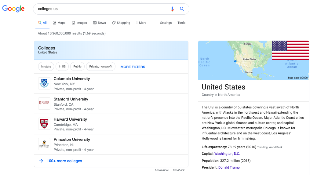 The new SERP feature will make it more difficult for universities to show up organically for their target keywords. Google will claim that these SERP features are implemented to help users – which they do. However, the real reason behind this decision would be to push an ad dominated experience.