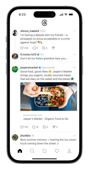 Early stages of Meta introducing ads on Threads