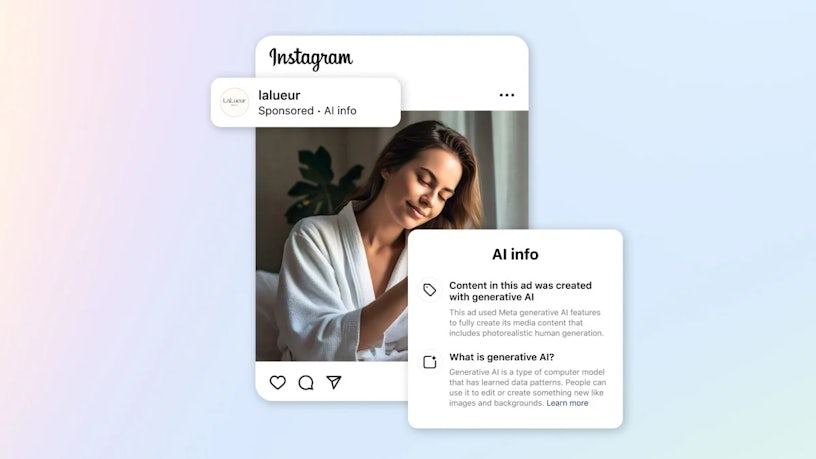 - In response to transparency expectations around AI, last year Meta introduced a label for users to identify ads that have been augmented with AI features. This is now rolling out on a larger scale to all AI-altered ads. The label reads ‘AI info’ above your ad, and when hovered over explains how it utilised generative AI in its making.