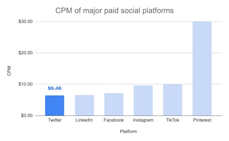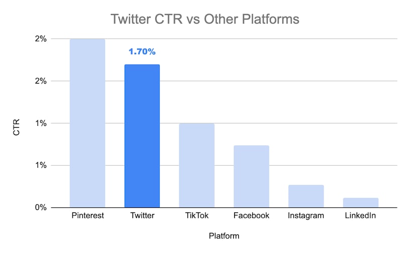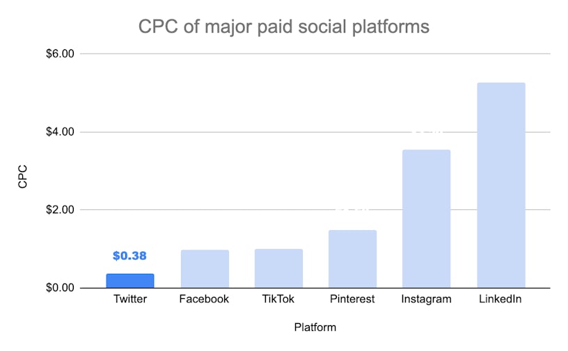 Twitter is really competitive in terms of CPC. This is thanks to both having a really cheap CPM and one of the strongest CTR versus other social media platforms due to its ability to effectively leverage trending and relevant topics/hashtags as part of its targeting. With these really competitive metrics if you are looking to drive traffic at an efficient rate you should consider investing in Twitter advertising services.