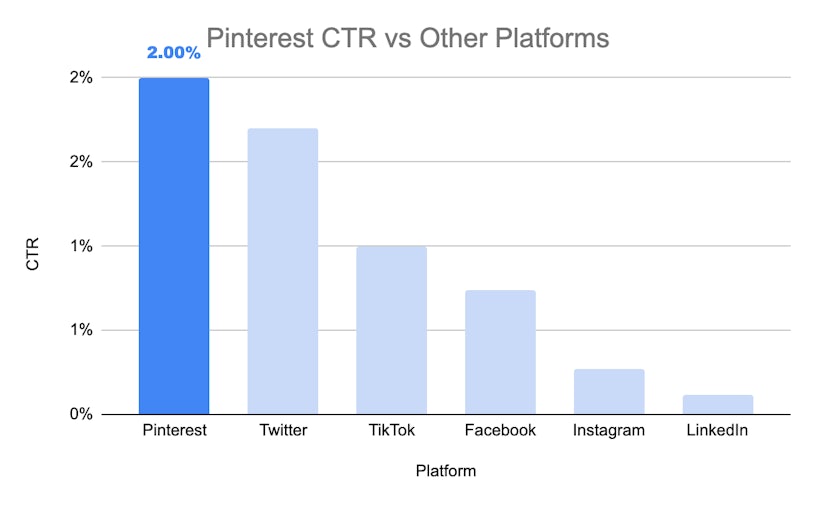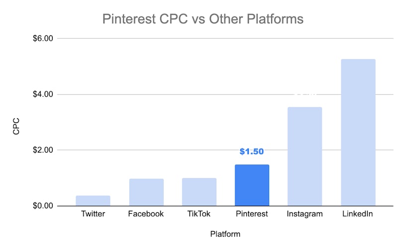 Pinterest produces a mixed bag of statistics. Typically Pinterest has the most expensive CPM versus other platforms, however, this is offset by having the strongest CTR. When all things are considered this ends up producing a CPC which falls into the middle range when compared against its competitors.