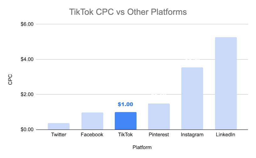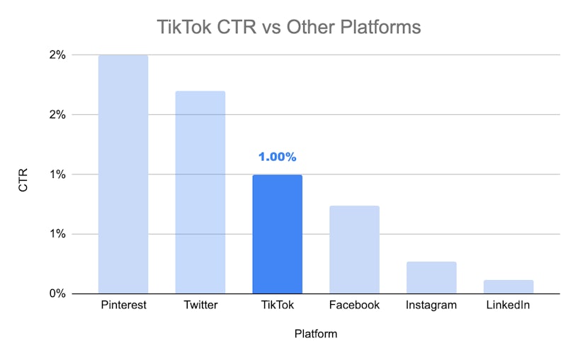 TikTok tends to sit in the middle range versus its competitors. This in itself can be surprising as its users tend to view content quickly before scrolling through to the next video, this makes the CTR result impressive compared to its closest rival Instagram (in particular reels) which tends to drive more expensive traffic and delivers a worse CTR.