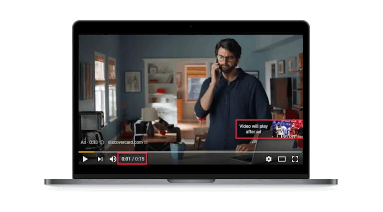 Also known as ‘forced view’, this ad type is shown in full to the user, without giving them the option to skip it, before they can watch their content. These ads are up to 15 seconds in length and because they are unskippable, you are unable to remarket to this audience. They are great for driving brand awareness and achieving a large reach.